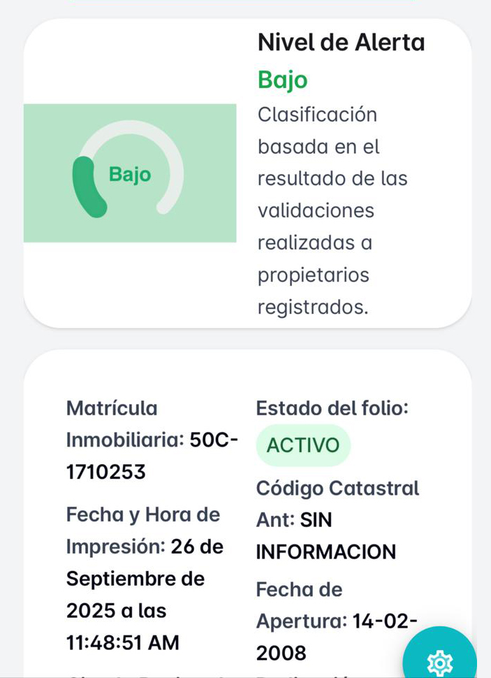 Nuestro sistema realiza una lectura inteligente del historial completo del inmueble y todos sus propietarios en tiempo real.