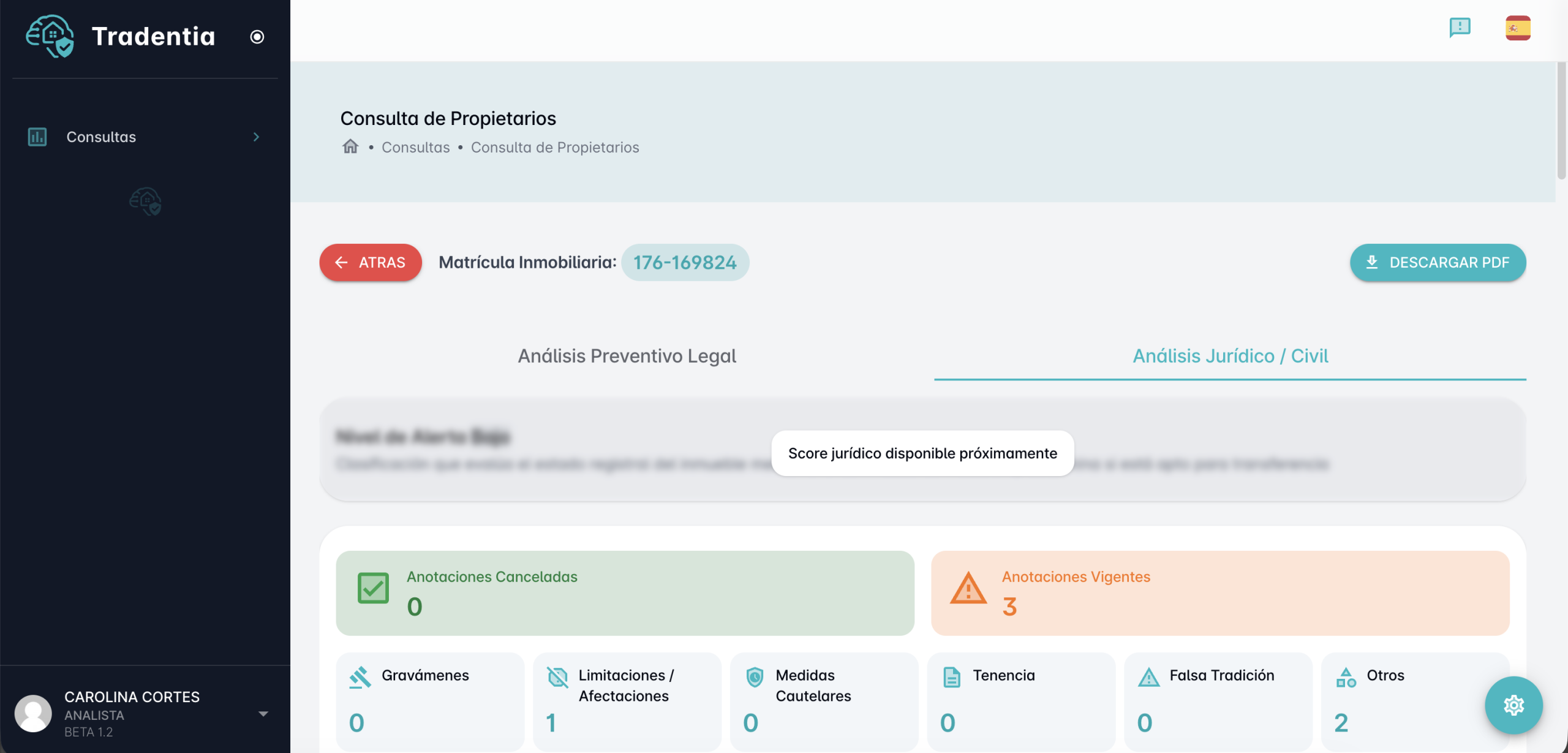 Un reporte Júridico y Penal con trazabilidad completa del inmueble y sus propietarios.